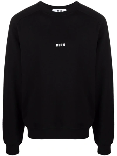 Black cotton logo-print cotton sweatshirt from MSGM featuring jersey fleece, logo print to the front, crew neck, long sleeves, fitted-cuff sleeves and straight hem.