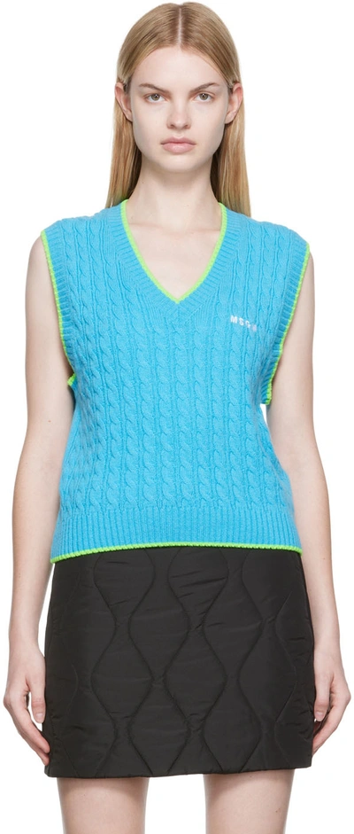 MSGM Embroidered-logo Knit Vest In Light Blue