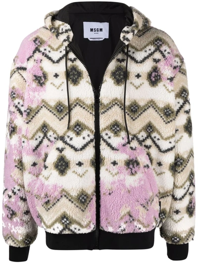 Sherpa Jacket With A Norwegian Motif By Msgm. Featuring: -front Closure -contrasting Zip -adjustable Drawstring -norwegian Motif -ribbed Elastic At Cuffs -regular Fit Composition: 53% FIBER ACRYLIC, 47% POLYESTER