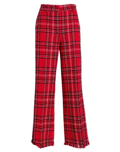 wide-leg pants, tweed, tartan pattern, fringes, high waisted, belt loops, regular fit, zipper fastening, 1 button, multipockets, dry clean, do not bleach, do not tumble dry , Color: Red , Size: 6
