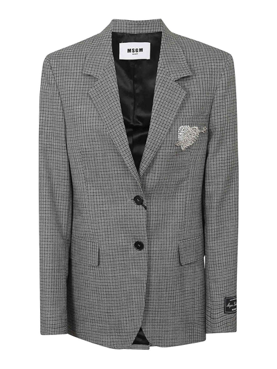 Casual style, Regular fit, Wool, Check pattern, Collar with lapels, Regular shoulders, Long sleeves, Contrasting logo patch applied, Cuffs with buttons, Button closure, Pocket for clutch bag, Heart embroidery with contrasting beads, 2 flap pockets, Back slit, Straight hem, Dry clean