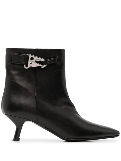 leather, metal applications, brand logo, solid colour with appliqués, leather backing, square toeline, geometric heel, leather sole, contains non-textile parts of animal origin, ankle boots , Color: Black , Size: 9