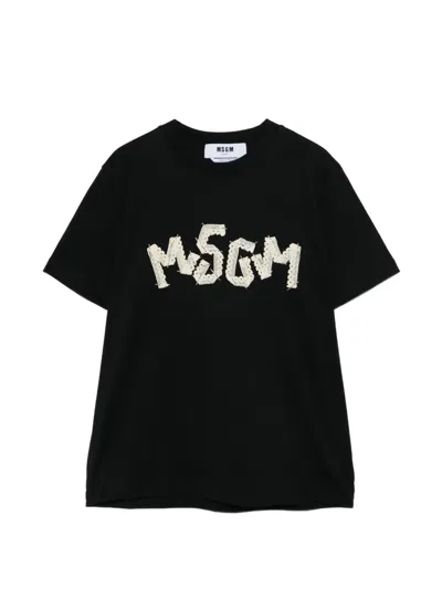 MSGM Lace Logo T-shirt In Black