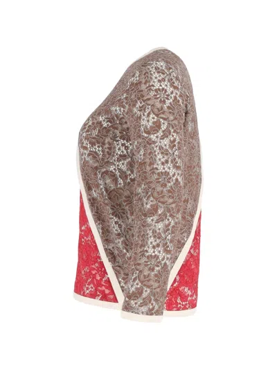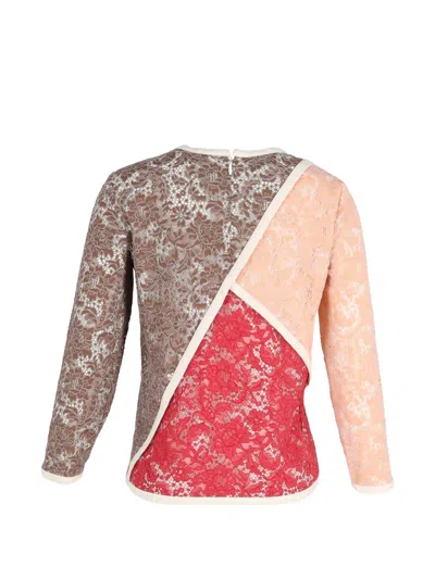 Pre-owned Lace Patchwork Long-sleeve Top In Brown