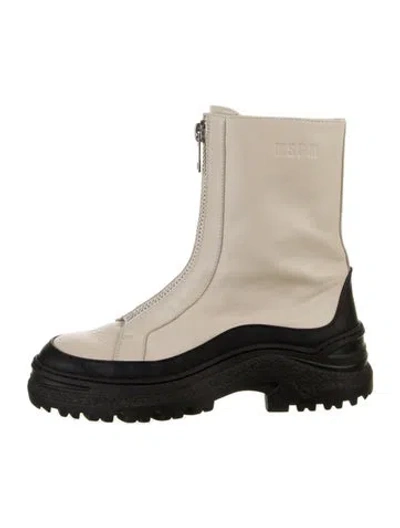 MSGM Leather Mid-Calf Combat Boots Black Colorblock Pattern Round-Toes Platform Unfortunately, due to restrictions, this item may not be eligible for shipping in all areas. | MSGM Leather Colorblock Pattern Combat Boots in Black, Women's IT 36 | 6
