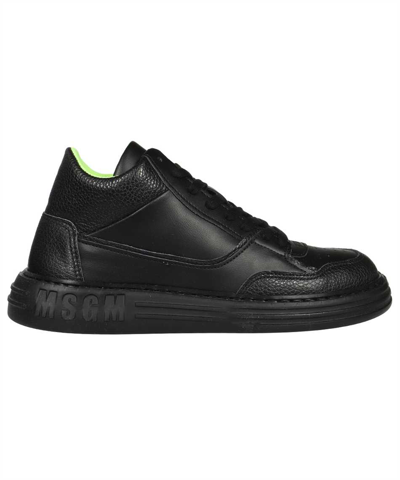 MSGM Leather Low Sneakers In Black