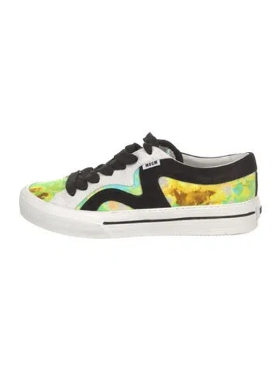 MSGM Leather Low Top Sneakers White Printed Round-Toes Platform Includes Box & Dust Bag Unfortunately, due to restrictions, this item may not be eligible for shipping in all areas. | MSGM Leather Printed Sneakers in White, Women's IT 39 | 9
