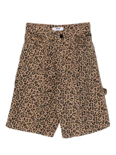camel leopard print multiple pockets front button fastening silver-tone rivets belt loops