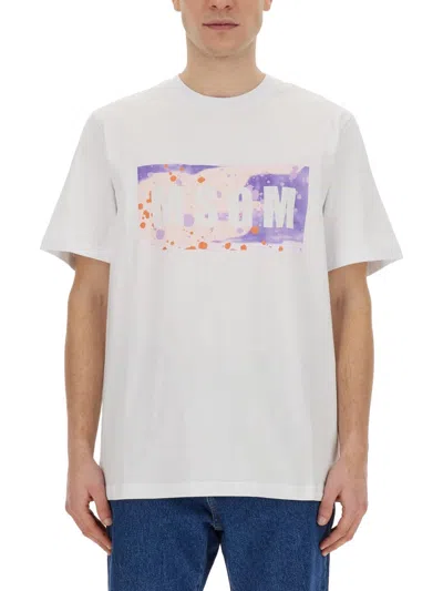 MSGM 'logo Box Camo' T-shirt In White