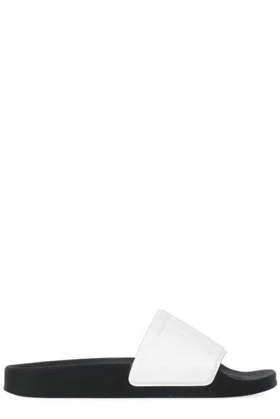 - White MSGM rubber slippers for man - Round toe - Front contrasting color relief logo - Contrasting color sole Composition: 85% Polyvinylchloride, 15% Felt Sole:, 100% Polyurethane