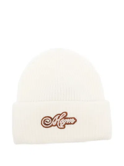 MSGM Kids' Logo-patch Ribbed Beanie In White