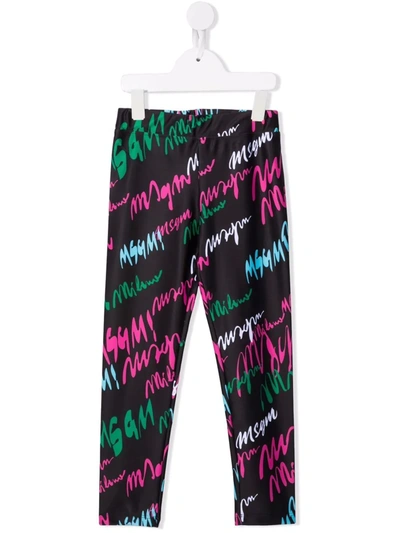 MSGM Kids' Logo-print Elasticated Leggings In Black