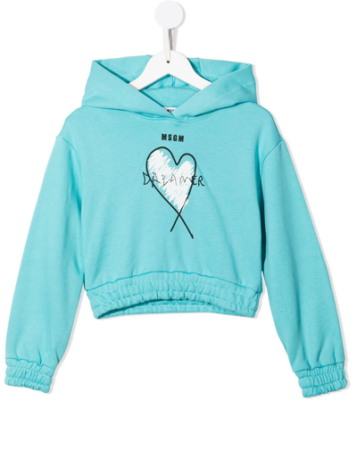 MSGM Kids' Logo-print Pullover Hoodie In Blue