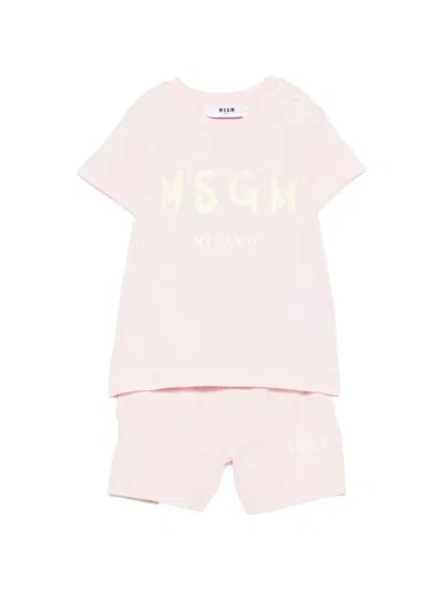 MSGM Babies' Logo-print Short Set In Pink