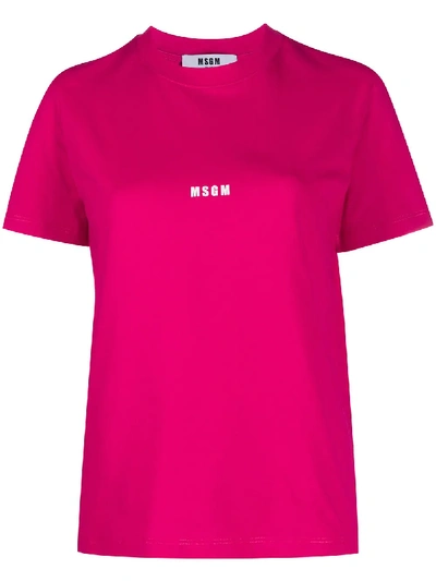 Pink cotton logo print T-shirt from MSGM featuring a round neck and short sleeves.
