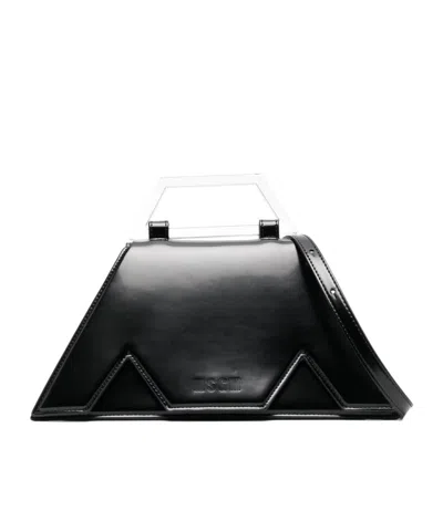 Trapezoidal design, transparent handle, one-shoulder shoulder strap, and logo decoration.