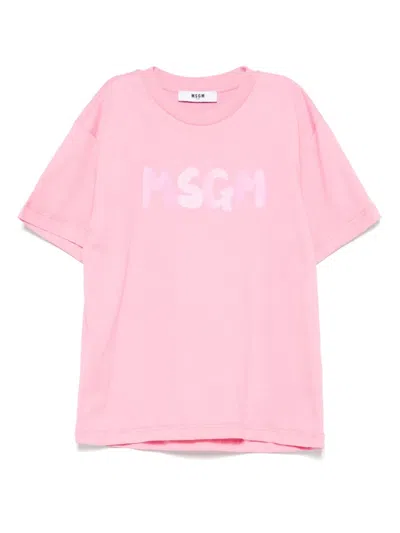 MSGM Kids' Logo-print Cotton T-shirt In Pink