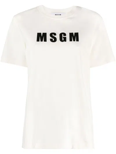 logo-print t-shirt, jersey, solid color with print, no appliqués, crewneck, short sleeves, hand wash, do not bleach, do not tumble dry , Color: Ivory , Size: XL