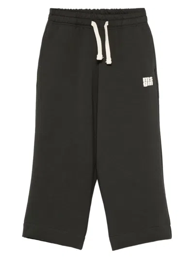 MSGM Kids' Logo-print Drawstring Trousers In Black