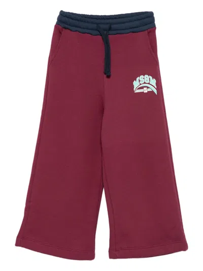 MSGM Kids' Logo-print Drawstring Trousers In Burgundy