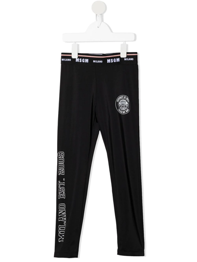 Jet-black/white logo-print track pants from MSGM Kids featuring two-tone design, logo-tape detailing, elasticated waistband, two diagonal pockets to the sides and elasticated cuffs.