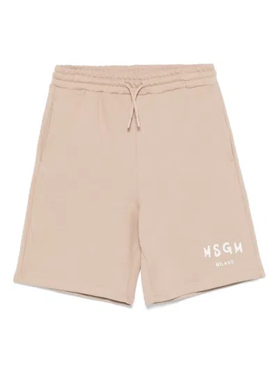 MSGM Kids' Logo-print Track Shorts In Neutrals