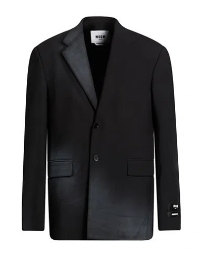 MSGM Man Blazer Black Size 38 Virgin Wool, Elastane