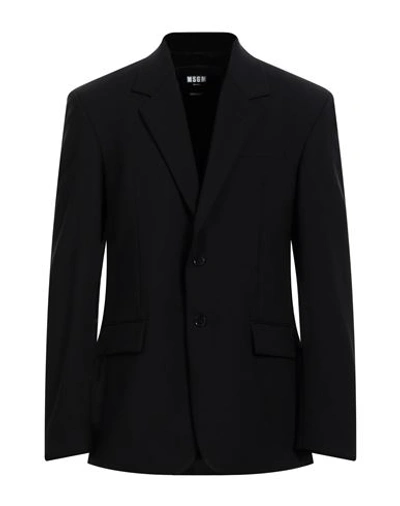 MSGM Man Blazer Black Size 40 Virgin Wool, Elastane