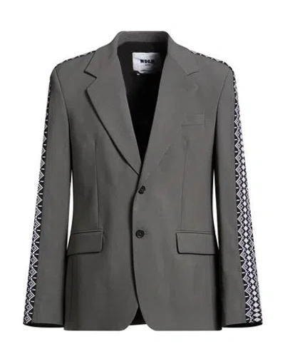 MSGM Man Blazer Grey Size 38 Virgin Wool, Elastane In Gray