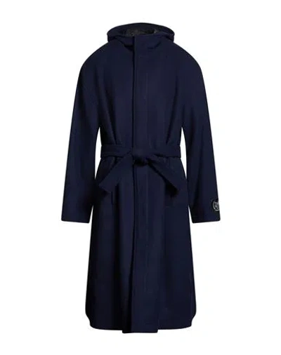 MSGM Man Coat Navy Size 42 Virgin Wool, Polyamide In Blue