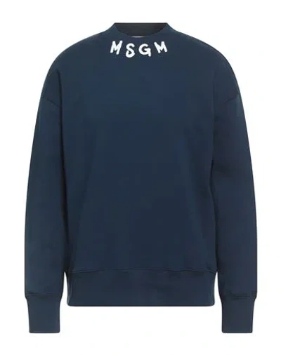 MSGM Man Sweatshirt Navy Size Xl Cotton In Blue