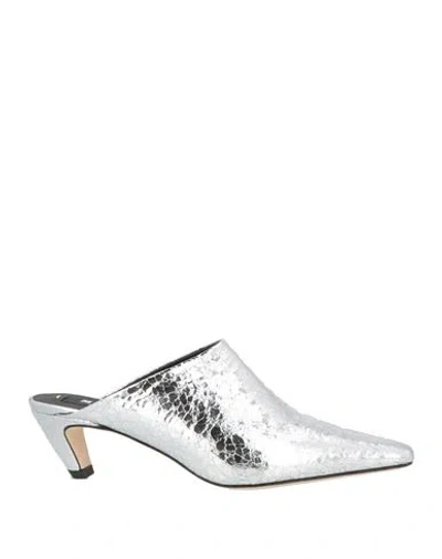 MSGM Metallic Leather Mules In Silver