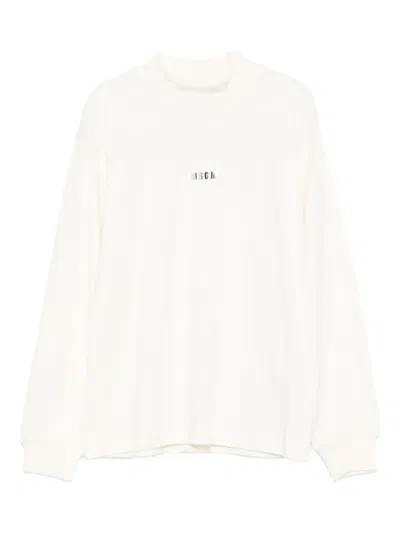 MSGM Kids' Mock-neck Logo Top In White