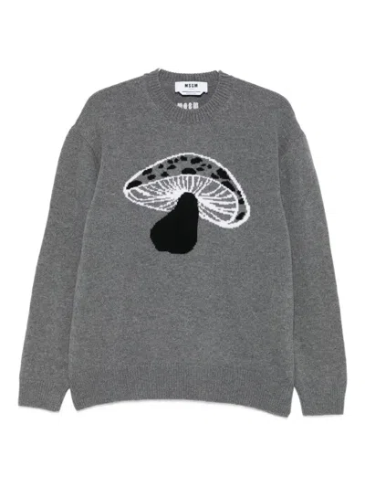 MSGM Mushroom-intarsia Wool Blend Pullover Clothing In Gray