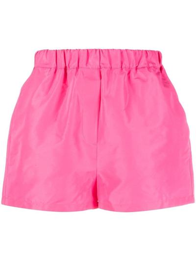 MSGM shorts crafted in jacquard nylon with all-over tone-on-tone micro floral pattern and front tone-on-tone lettering logo emboridery. Loose fit, elasticated waistband, side slanted pockets and rear welt pocket. The model is 177 cm tall and wears a size IT 38. Composition: 100% poliestere