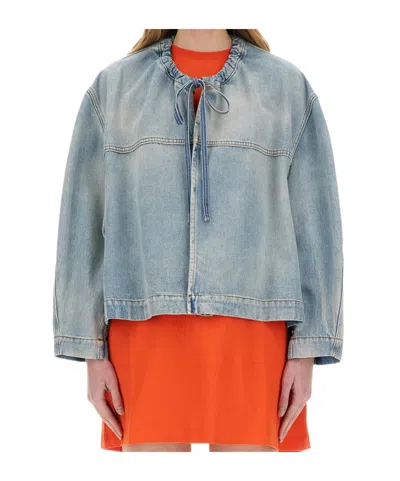 MSGM Oversized Denim Jacket Drawstring Detail In Navy
