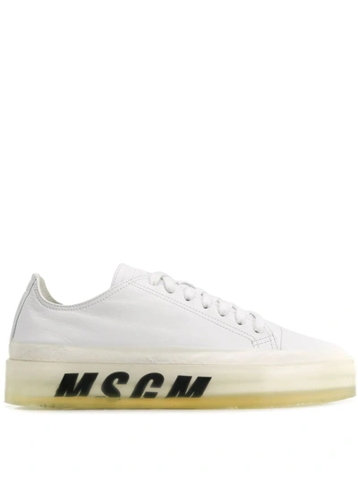 Infusing his uniquely Italian flavour of optimism, Massimo Giorgetti designed the latest MSGM collection for the girl who goes out to be seen. These white oversized sole sneakers are crafted from leather and feature a round toe, a flat rubber sole, a lace-up front fastening, a brand embossed tongue and a logo print to the sole.