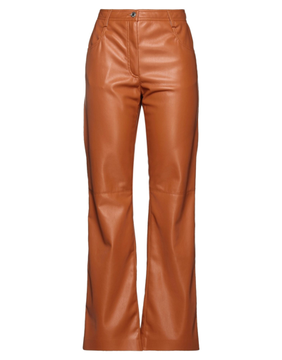 coated fabric, no appliqués, solid color, high waisted, straight leg, regular fit, button closing, zipper closure, multipockets , Color: Brown , Size: 6