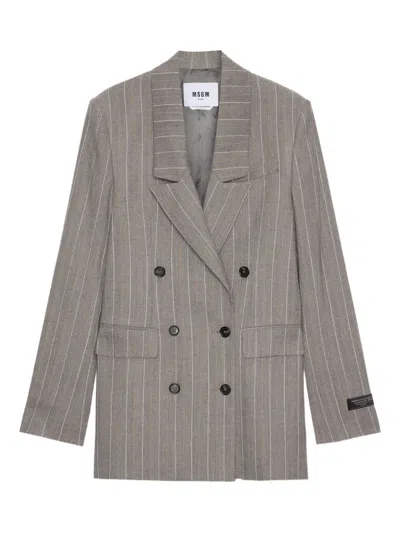 MSGM Pinstripe Double-breasted Jacket In Gray