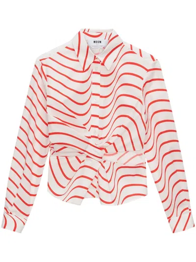 red front button fastening buttoned cuffs twist detailing pointed flat collar