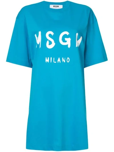 MSGM Printed Logo T-shirt Dress In Blue