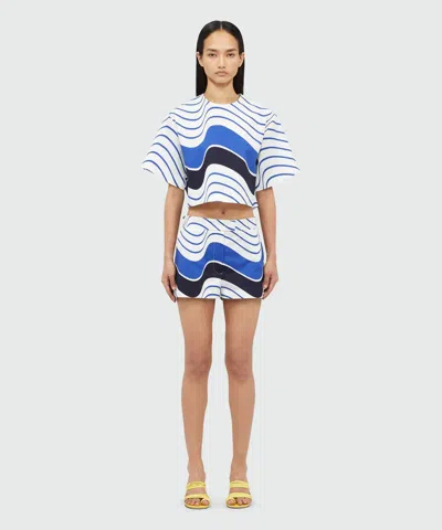 blue concealed front fastening two side inset pockets two rear welt pockets straight hem