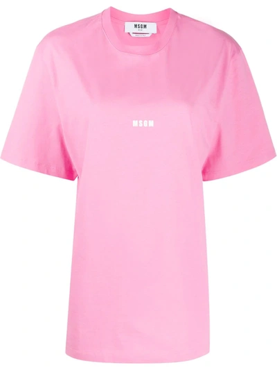 MSGM Printed Slogan Oversized T-shirt In Pink
