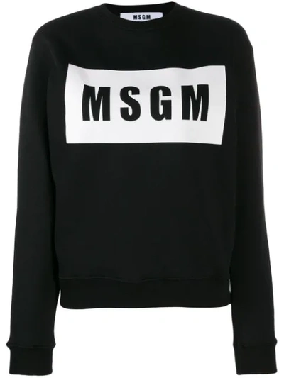 Black cotton printed T-shirt from MSGM featuring long ribbed sleeves, a crew neck, a logo to the arm and a relaxed fit.