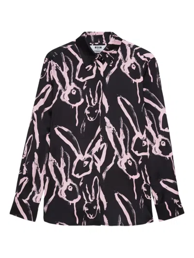 MSGM Rabbit Print Shirt In Black