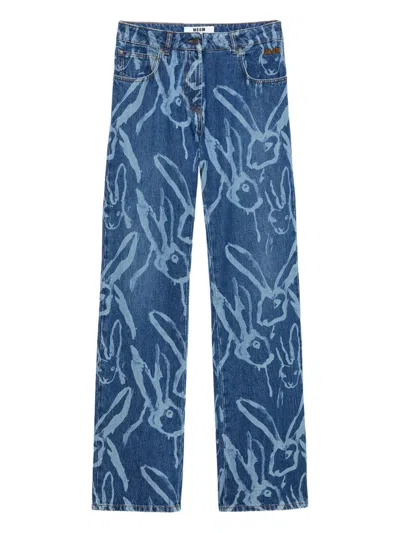 MSGM Rabbit-print Trousers In Blue