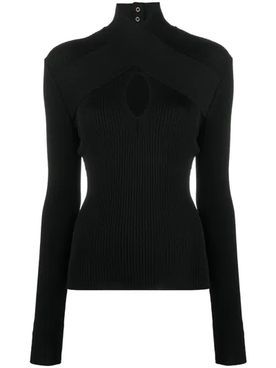 The ribbed sweater by MSGM is a piece with a contemporary and sophisticated style. Made from an elegant black fabric, it features a design with cut-out details that add character and originality. It is perfect for adding a touch of class to your wardrobe. Discover it now!