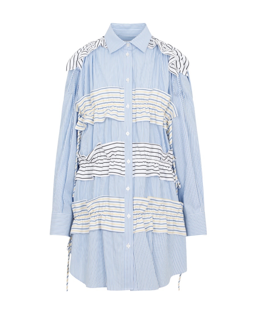MSGM Ruffle-stripe-detail Buttoned Mini Dress In Blue