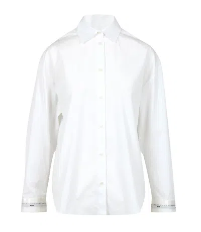- Cotton poplin - Classic pointed collar - Button closure - Long sleeves with MSGM logoed satin ribbon cuffs and button closure - Pleats at the shoulders - Rounded hem - Oversize fit