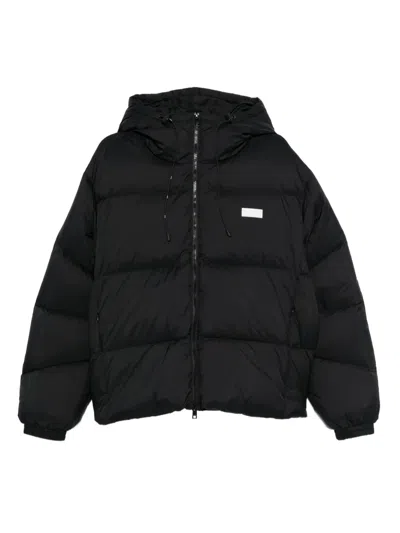 MSGM Short Black Down Jacket With White Label And Zip
